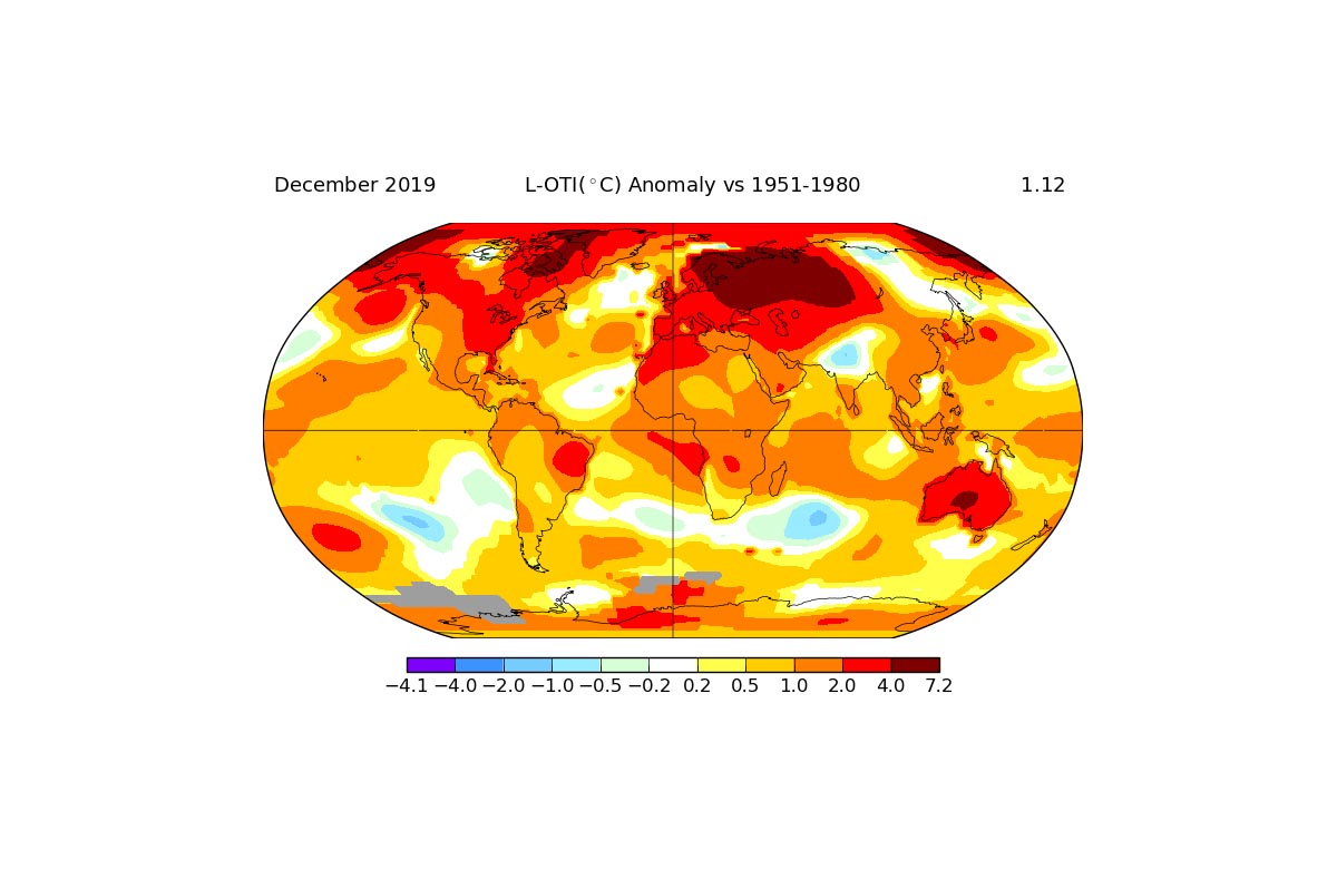 NASA’nın Goddard Uzay Araştırmaları Enstitüsü’ne (GISS) göre 2019, 1951-1980 ortalamasından 1.8 derece Fahrenhayt (0.98 santigrat) daha sıcaktı. Veri toplamak için NASA, 20.000’den fazla hava istasyonu, deniz yüzeyi şamandıraları, gemileri ve Antarktik araştırma istasyonlarından kapsamlı bilgiler aldı. Veri kümesinin tamamı ajansın web sitesinde bulunabilir. Verilerin istatistiksel analizi, bu ısınmanın esas olarak üretim, çiftçilik ve hayvancılık gibi insan faaliyetleri tarafından üretilen artan karbondioksit emisyonlarının yanı sıra diğer sera gazlarından kaynaklandığını göstermektedir.