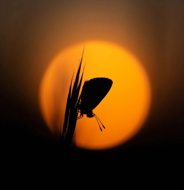 Richard Sheldrake’in gün doğumunda tüneyen kahverengi argus’u