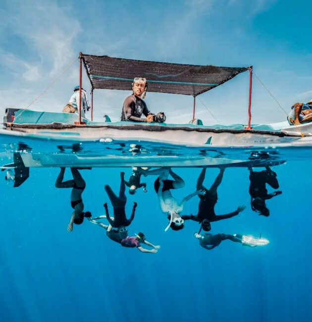 Bu fotoğrafta bir grup serbest dalgıç, berrak suda bir teknenin altında baş aşağı asılı kalarak yerçekimine ustaca meydan okuyor. Siluetleri ‘Örümcek Evreni”ni anımsatan büyüleyici bir sahne yaratıyor; formları, su altı dünyasıyla uyum içinde dans ediyor gibi görünüyor, insan hareketinin sanatını su yaşamının akışkanlığıyla harmanlıyor.