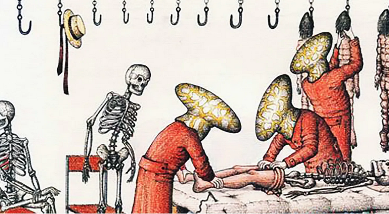 Kitapta, şiddet içeren sahnelerde dev tavşanlar, bir ortaçağ Yodası, tek boynuzlu atlarla savaşan ayılarla tuhaf insan ve hayvan çizimleri yer alıyor. Belki bunları çizen rahiplerin zihinlerini merak uyandırmıyor değil.
