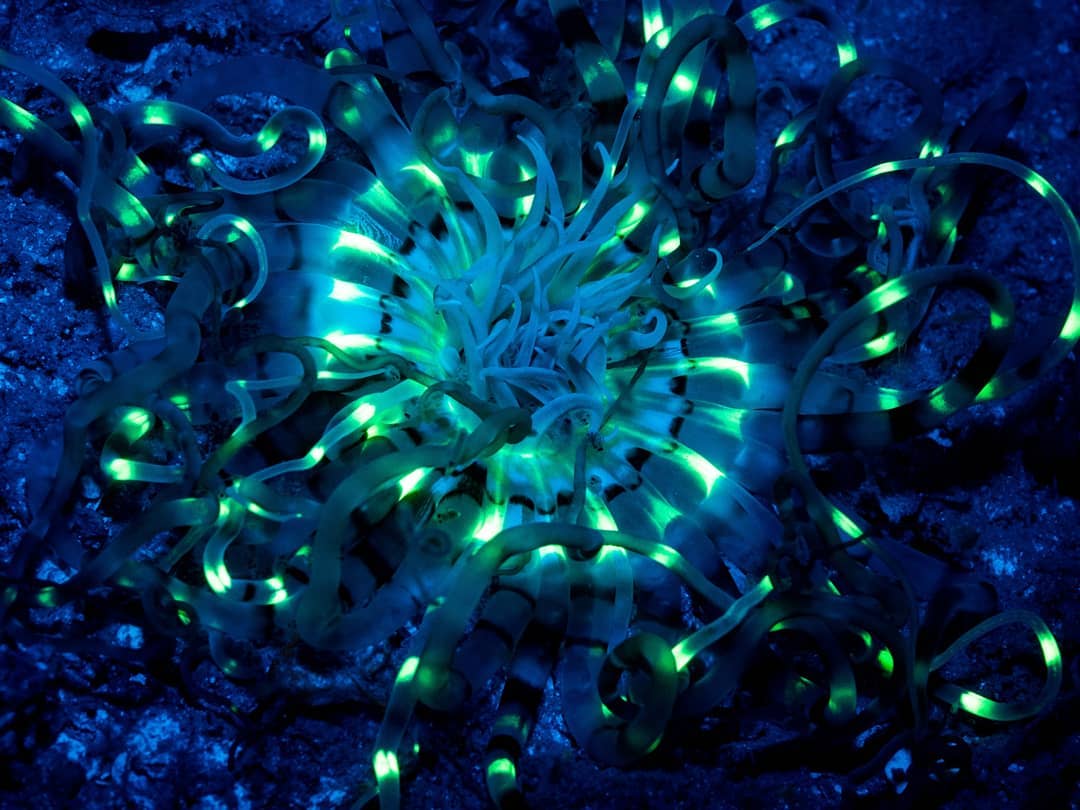 Neon deniz canlıları, parlak renkleriyle okyanusu aydınlatıyor. Sanki Avatar’dan bir sahne gibi.