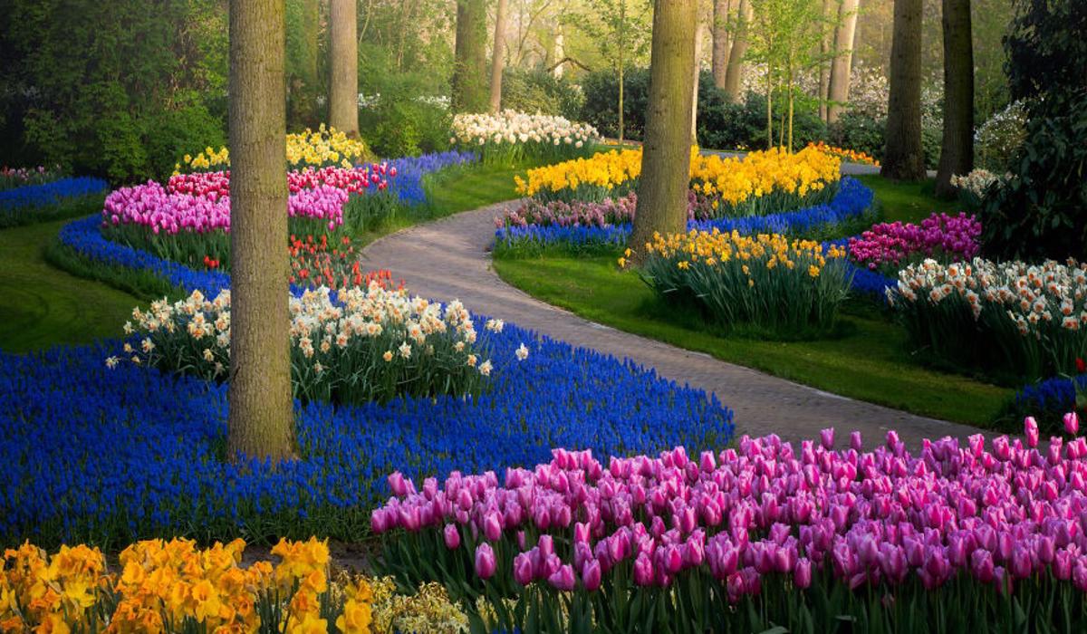 Fotoğrafçı, Hollanda’nın şimdiye kadarki en güneşli Nisan olduğunu, bu yüzden çiçekler çok erken çiçek açtığını söylüyor.