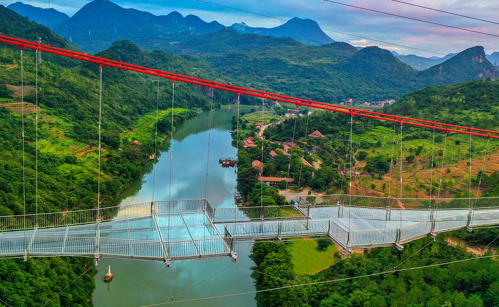 Çin’in Huangchuan Three Gorges Scenic Bölgesi’ndeki 526,14 metre uzunluğundaki cam tabanlı yeni bir köprü artık dünyanın en uzun cam köprüsü olarak yer alıyor. Uzun yapı, Zhejiang Üniversitesi Mimari Tasarım ve Araştırma Enstitüsü’nün projesi ve Lianjiang Nehri’nin 201 metre yukarısında yer almaktadır. Parlak kırmızı kuleler, aralarındaki 8,8 metre genişliğinde bir güverte ile bağlanıyor. Kablolarla asılan ve 500 kişiyi taşıyabilen şeffaf köprüyğ çelikle kaplı 4,5 santimetre kalınlığında üç kat cam oluşturuyor. Dezeen’e göre, önceki rekor sahibi, Çin’in Hebei eyaletindeki 488 metrelik sallantılı bir köprüydü.