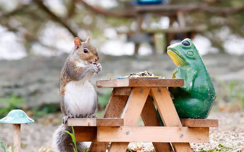 Fotoğrafçı Kristen Flaggkendi arka bahçesinde sincaplar, kuşlar ve diğer hayvanlar için bir kafe yaptı. Flagg onlara sadece meyve, tohum ve fındık sunmakla kalmıyor aynı zamanda sevimli küçük müşterilerinin fotoğraflarını da çekiyor.