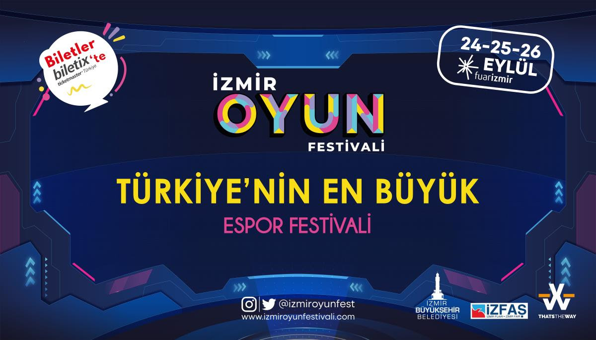 On binlerce ziyaretçinin katılması beklenen İzmir Oyun Festivali, 24-25-26 Eylül 2021 tarihleri arasında Fuar İzmir’de kapılarını açıyor. Retro alanları, mobil oyun alanları, VR (sanal gerçeklik) alanları gibi çeşitli deneyim alanlarının olduğu İzmir Oyun Festivali’nde cosplay yarışması ve espor turnuvaları gibi etkinlikler de yer alıyor.