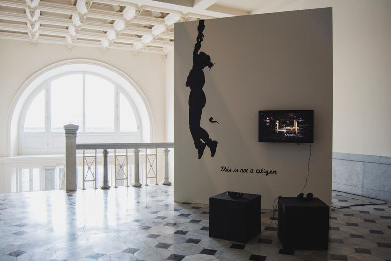 Yapının çeşitli yerlerinde sergilenen diğer işler arasında, Pierre-Joseph Proudhon’un girişteki mermer duvara uygulanan anarşist sloganı Property is Theft [Mülkiyet Hırsızlıktır] (2014/16) ile kurumsal ırkçılık üzerine Martin Krenn ile ortak üretim bir afiş (2004) yer alır. Emergency Turned Upside-Down [Acil Durum Tepetaklak] işinin zeminde sunulan parçaları, Suriye’nin de içinde bulunduğu savaş bölgesinden mültecilerin AB ülkelerine ulaşmak için kullandığı ana göç yolu olan Balkan hattındaki devletlerin örtüşen (ve yakın zamanda yeniden düzenlenen) sınırlarını gösterir.