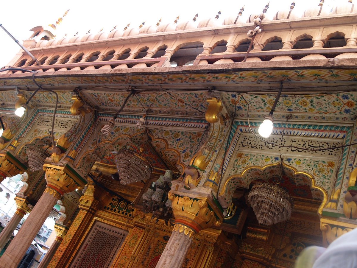 Delhi’deki önemli İslam izlerinin görüldüğü eserlerinden biri… Bu dergâhın hiçbir geliri yok, sadece bağışlarla kaynayan kazanlarından fakir fukara halkın karnı doyuyor. Ve barınıyorlar. Dergâha karanlık ve dar olan uzun bir koridordan yine yalınayak giriyoruz. Ayakkabılarımızı çarşıda raflara bırakıp, girdik.