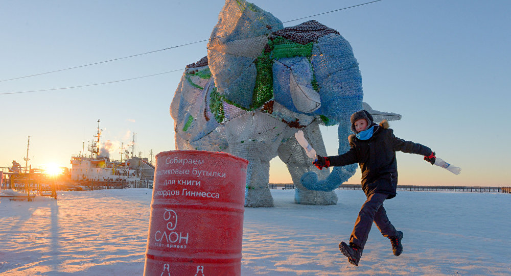 Rusya’nın Arhangelsk kenti atık plastik şişeleri değerlendirmek için yaratıcı bir uygulamaya girişti. Yapımına eylül ayında başlanan ve kent sakinlerinin her birinin katkıda bulunduğu dev filin parçaları bir fabrikada birleştirildi.