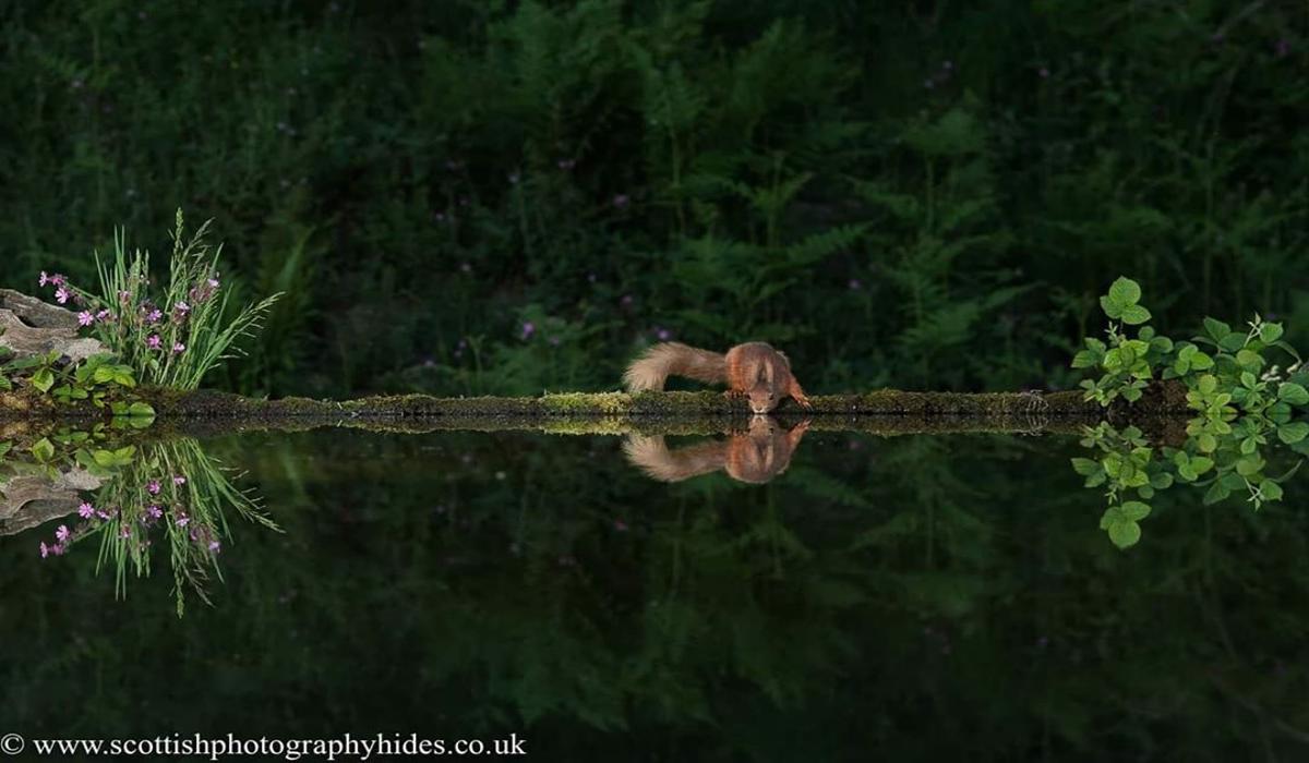 İskoç fotoğrafçı Alan McFadyen büyük çaba harcayarak ormanda bir havuz yaptı ve elli kova suyla doldurduğu havuzdaki suyun yüzeyini, vahşi yaşama ait mükemmel simetrik yansıma fotoğrafları çekmek için kullandı. Bölgede çok az su bulunan kuşlar, porsuklar, sincaplar ve tilki de dahil olmak üzere pek çok hayvanın şahane fotoğraflarını çekti.