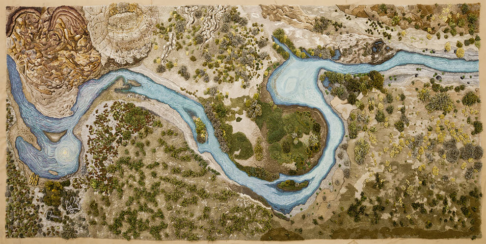 Tekstil sanatçısı Alexandra Kehayoglou, Arjantin’in doğal manzaralarını sanatına yansıtıyor. Sanatçının seçtiği yerler genellikle Santa Cruz Nehri gibi siyasi tartışmalara konu olan ya da Raggio deresi gibi, insan eylemiyle dramatik biçimde değişen bölgeler.