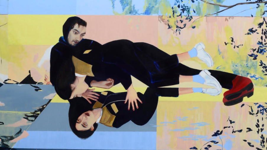 Apolonia Sokol’un köşeli ve kapalı geometrik şekillerin tezahür ettiği tablolarında, genç kadınlar alışılmadık bir yer tutarlar. Bu alan kısıtlayıcı gibi görünse de aslında sığındıkları bir limandır. Öyle ki, samimi perspektiflerin, koyu veya açık tonlu duvarların ve keskin kenarların nihayetinde kendilerini güvende hissettikleri bir ortam sağladığı görülmektedir. Bu bakımdan, genç kadınlar çelişkili bir denge içindedir: Güçlü ve hassas, kararlı ama şüphelidirler. Birbirlerine sıkı sıkıya bağlı oldukları bir kadın dayanışmasına sığınırlar, kutsal ve erotik bedenleri birbirine karışmıştır. Hem kardeş hem sevdalı olan bu kadınlar, kedi yavruları gibi huzur içinde uyurlar.