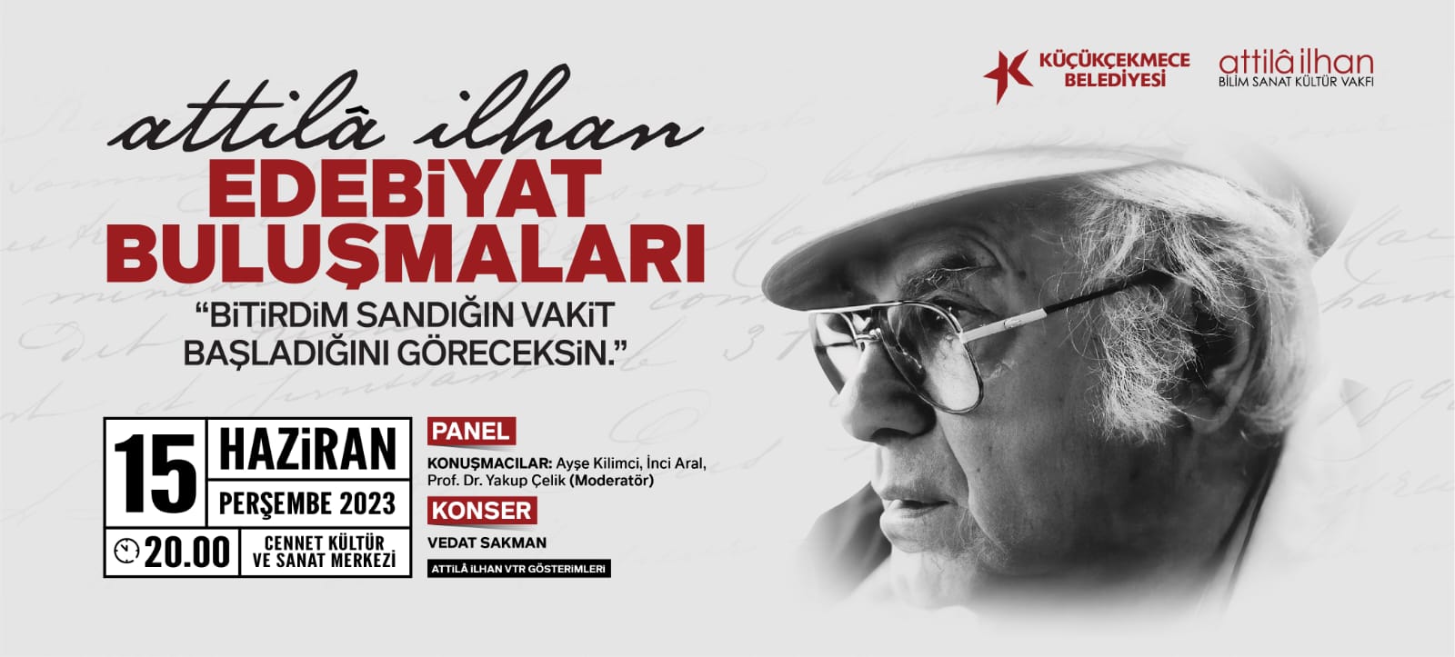 Attilâ İlhan Bilim Sanat Kültür Vakfı ve Küçükçekmece Belediyesi işbirliğinde Attilâ İlhan Edebiyat Buluşmaları’nın ikincisi bu yıl Küçükçekmece’de düzenleniyor. Attilâ İlhan’ın doğum günü olan 15 Haziran Perşembe günü Saat 20:00’da yapılacak etkinlik; panel, konser ve vtr gösterimlerimden oluşan dolu bir içeriğe sahip.