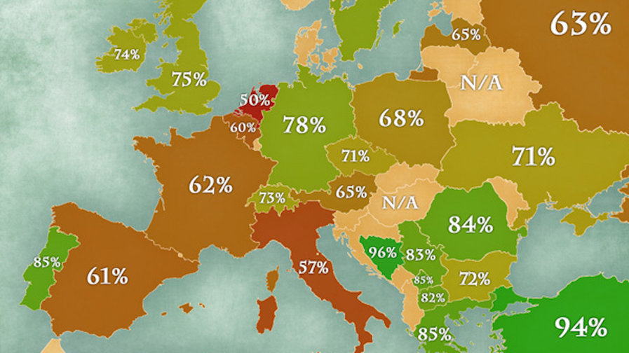 Listede en iyi durumda olanlar Türkiye ve Bosna. Diğer Balkan ülkeleri de listenin en üst sıralarından yer alıyor. Balkan ülkelerine en batıdan Portekiz eşlik ediyor. Listenin en altında ise Hollanda var.