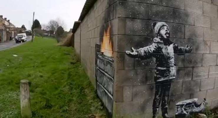 Ünlü graffiti sanatçısı Banksy’nin yeni eseri Galler’de ortaya çıktı. Sanatçı çevre kirliliğini duvarlara taşıdı.