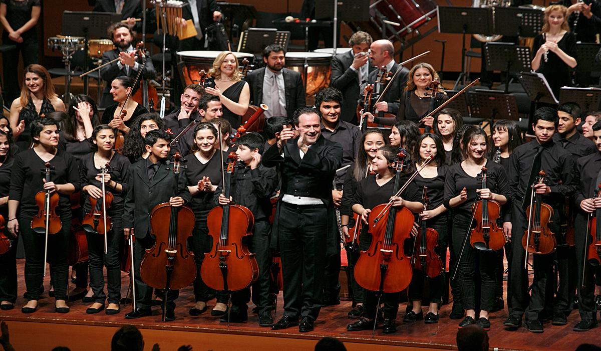 13 Aralık 2014 tarihli bu konserimizde Sascha Goetzel BİFO’yu, Samuel Matus ise Barış İçin Müzik Orkestrası’nı yönetiyor. Venezüela’daki ünlü El Sistema’nın düşüncesinden hareketle oluşturulmuş topluluk, karşılıksız müzik eğitimi sağladığı onlarca çocukla umudun en saf ve en güçlü halini bizlere hediye edecek… Piyanist Kaan Baysal’ın solist olarak katıldığı konserde Glinka’nın Ruslan & Ludmila, Ravel’in Ma Mere l’Oye, Mozart’ın La Majör Piyano Konçertosu, Bizet’nin Carmen Süiti, Rossini’nin William Tell Uvertürü, Bernstein’ın Batı Yakası Hikâyesi’nden Senfonik Danslar’ı, Dvořák’ın 9. Senfoni’si ve Johann Strauss’un Radetzky March’ı seslendiriliyor.