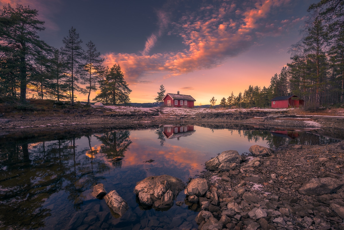 Norveçli peyzaj fotoğrafçısı ve matematik öğretmeni Ole Henrik Skjelstad’ın 2013 yılından beri devam etmekte olan bir fotoğraf serisi var. Evine kısa bir mesafede bulunan pitoresk bir gölün kıyısındaki kırmızı bir kulübe, 5 yıldan fazla süren yaratıcı bir vizyona dönüştü.