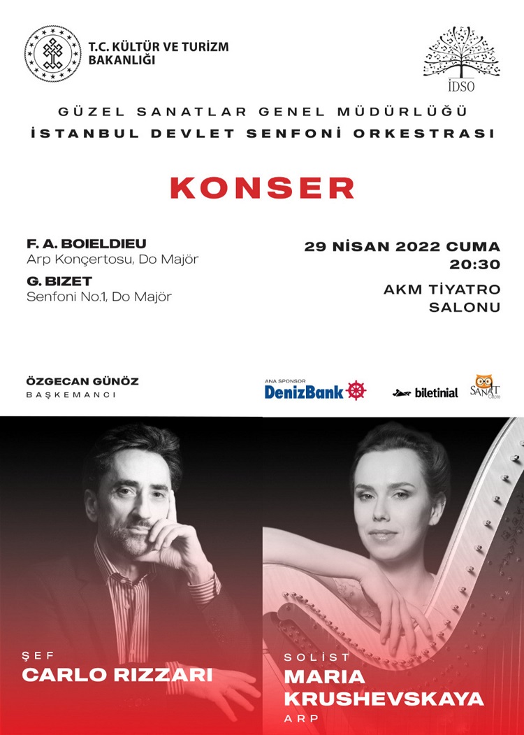 29 Nisan 2022 Cuma akşamı saat 20.30’da İstanbul Atatürk Kültür Merkezi Tiyatro Salonu’ndagerçekleştirilecek İDSO DenizBank Konserleri’nde bu hafta; günümüzün önde gelen genç ve yetenekli arpçılarından biri olarak kabul edilen, Bolşoy Tiyatro Orkestrası’nın baş arpçısı Rus asıllı Maria Krushevskaya dinleyicilerle buluşacak.