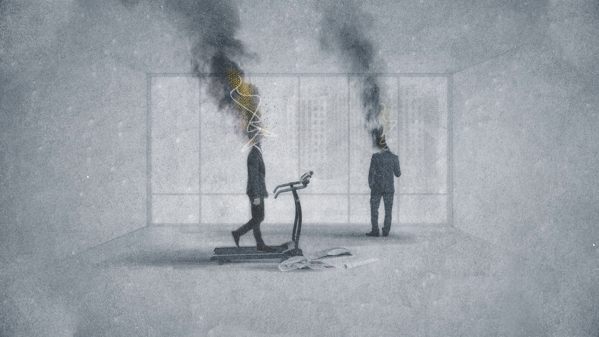 İsimsiz karakterlerin birçoğunun yüzleri bir bitki, dijital cihaz ya da kumaş maske tarafından gizleniyor ve çağdaş yaşamı eleştiren hem sıradan hem tuhaf görevleri üstleniyorlar.