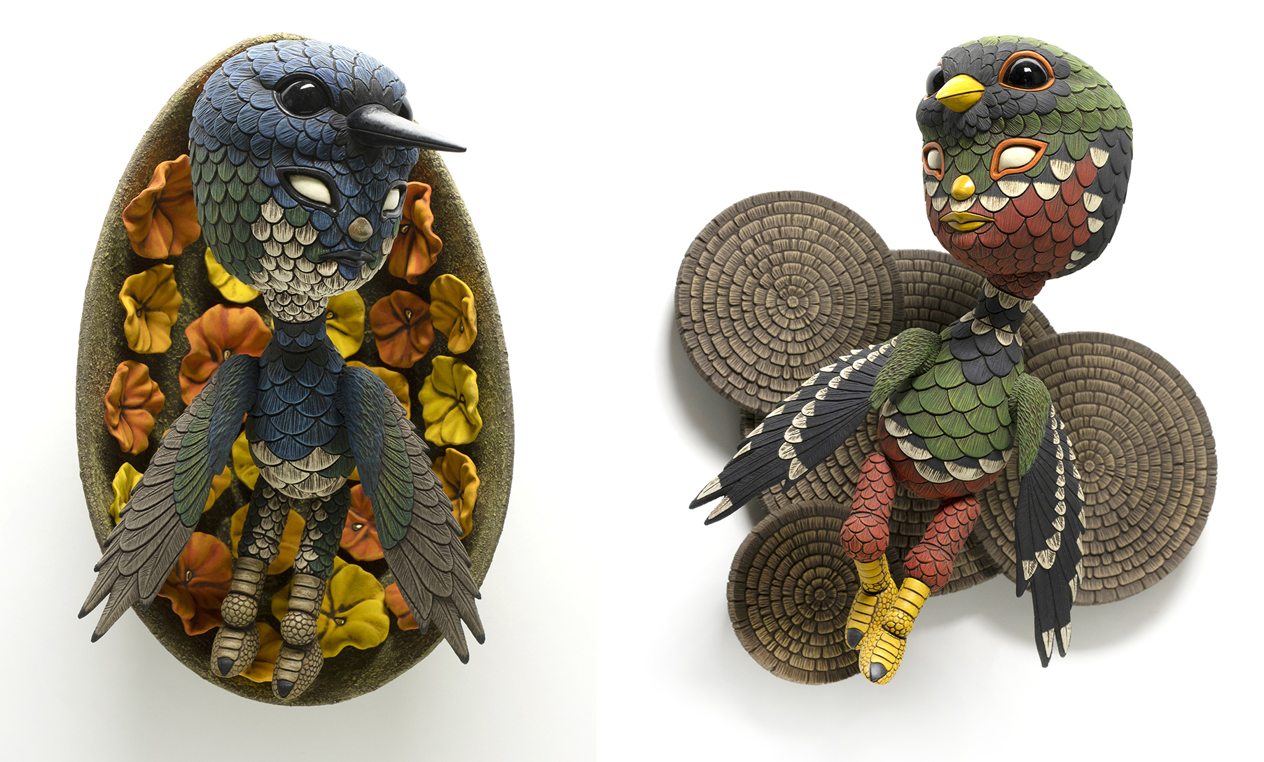 Sanatçı Calvin Ma, Blend In: Making Home başlıklı, devam eden serisinde, kendisini farklı kuşlar olarak kamufle eden tuhaf bir karakter aracılığıyla sürekliliği olan aidiyet ihtiyacını aktarıyor. Baykuşlardan güvercinlere ve Mandarin ördeklerine kadar hassas renklere sahip kostümler figürü bir yığın tüy ve pullu ayakkabılarla sarıyor.