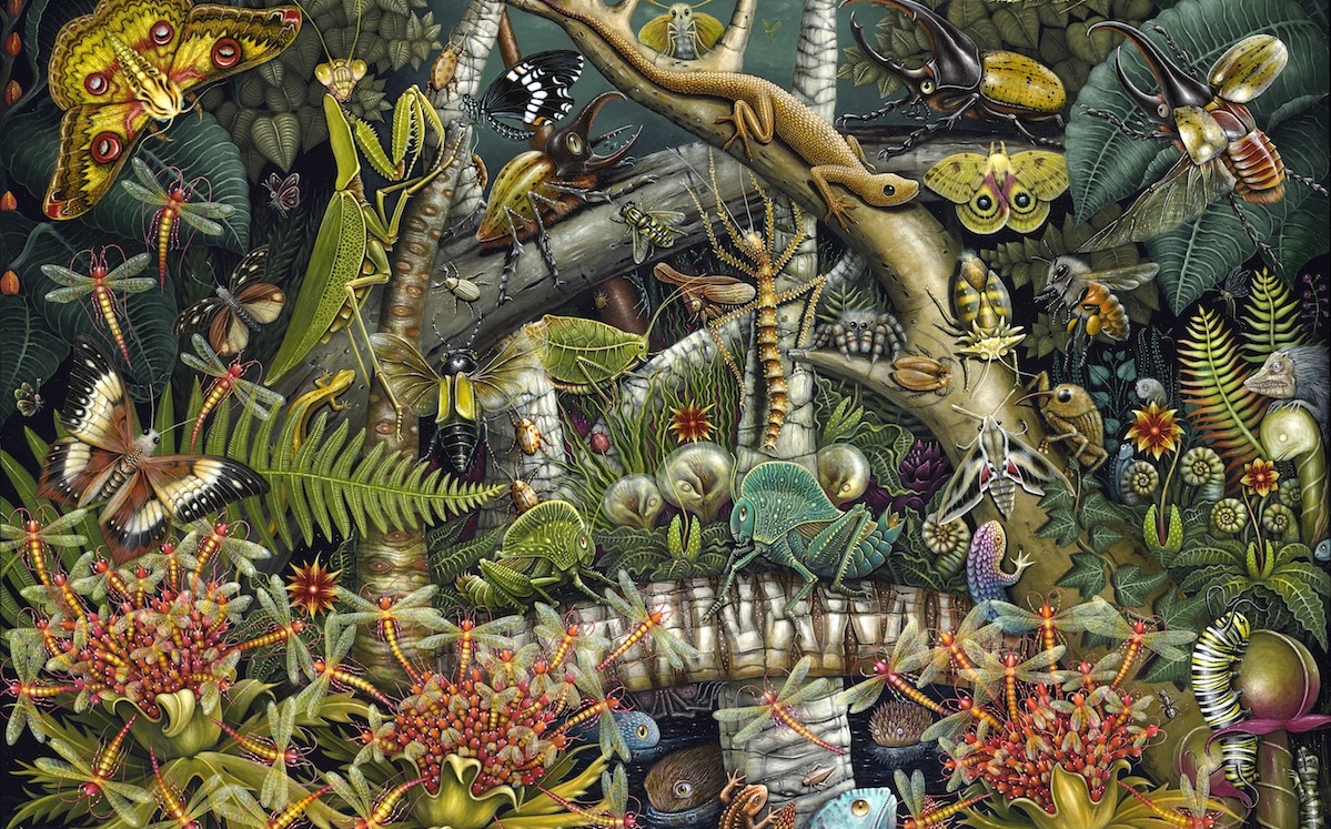 Su altında ve çimenlerin arasında yaşayan sayısız ve benzersiz canlı var. Los Angles merkezli sanatçı Robert Steven Connett, daha az görülen bu ekosistemlerin çeşitliliğini canlı akrilik resimlerinde gözler önüne seriyor. Plankton ve denizanasından peygamberdevesi ve gergedan böceklerine kadar her renkli resim, özenle oluşturulmuş düzinelerce yaşam formuyla dolu.