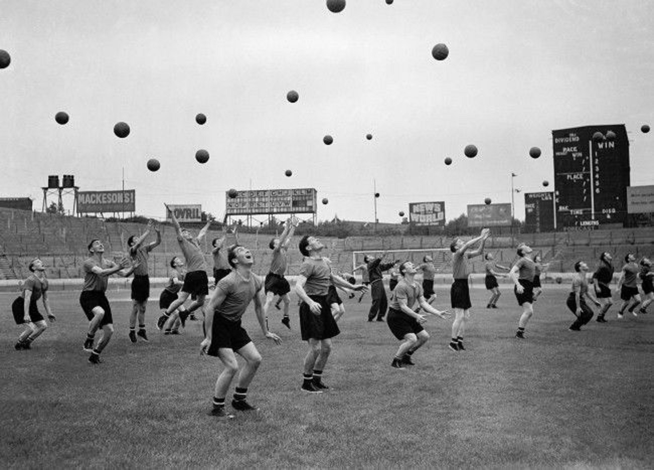 Tom Finney, İngiltere antrenman seansı sırasında Stamford Bridge’de Nat Lofthouse ile solda.