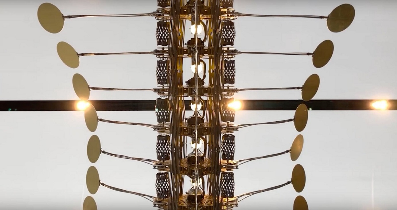Seul merkezli sanatçı Choe U-Ram, gömülü CPU motorlarının yardımıyla hayvan ve bitkilerin kıvrak hareketlerini taklit eden büyüleyici kinetik heykeller yaratıyor. Büyük ölçekli parçalar genellikle tavandan asılıyor ve metalik bileşenler üzerinde parıldayan yansımalar oluşturan LED ışıklarla aydınlatılıyor.
