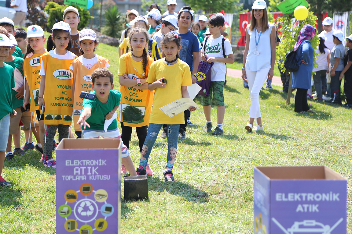 “İleriyi düşünün, geri dönüştürün”, “Her atığı atma çöpe, tüketme kaynakları bilinçsizce”, “Temiz bir çevre için, engellilere destek için bitkisel atık yağlarınızı bize getirin”, “Gelin arkadaşlar bir olalım, çöplerimizi geri dönüşüme atalım” ve “Tabiat miras değil, gelecek nesillere devredilecek bir cennettir” pankartlarıyla süslenen parkta çocuklar aynı zamanda doyasıya eğlendi.