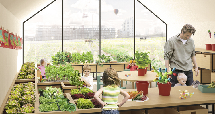 Son zamanlarda birkaç program kendi ürünlerini yetiştirip hasadını yapmalarına imkân sağlayarak yemeklerinin nereden geldiklerini çocuklara öğretmeye odaklandı. Ama şimdi, yenilikçi bir tasarım sayesinde, sürdürülebilir tarım ve eğitimi bir arada yapabilen bir okulöncesi eğitim mümkün.