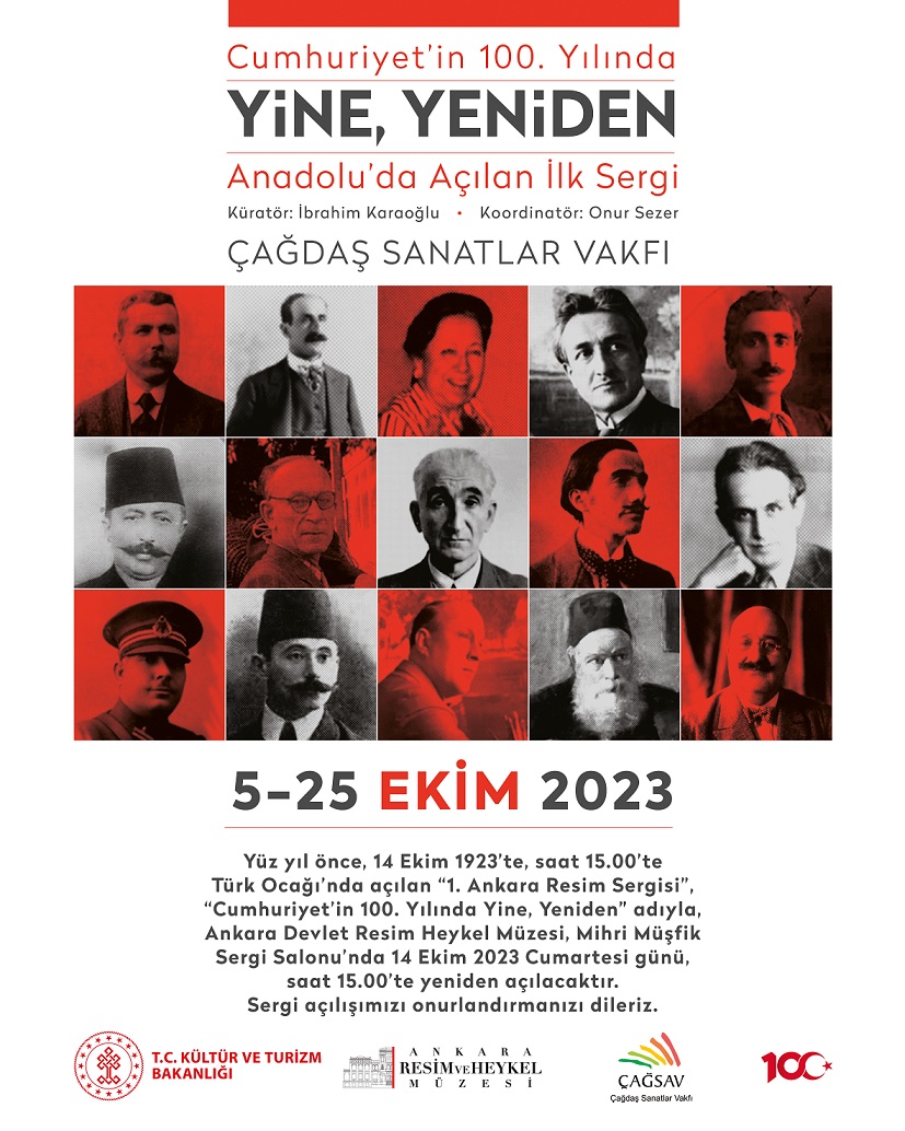 1923 yılında Anadolu’da açılan ilk sergiden ilham alan ÇAĞSAV, Cumhuriyetin 100. yılında, Atatürk’ün mirasını dünden bugüne taşıma amacıyla T.C.Kültür Bakanlığı’nın katkılarıyla ilk sergiye katılan ressamların o dönemyaptıkları eserlerden oluşan özel bir seçki “Cumhuriyet’in 100. YılındaAnadolu’da Açılan İlk Sergi/YİNE, YENİDEN” adıyla sanatseverlerle buluşturacak. 5 Ekim’de açılacak olan sergi, 25 Ekim’e kadar Ankara Resim ve Heykel Müzesi Mihri Müşfik Sergi Salonu’nda gezilebilecektir.