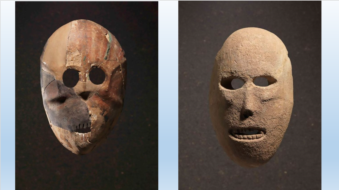 1983 yılında, Harvardlı tarihçi Ofer Bar-Yosef liderliğindeki küçük bir arkeolog ekibi, güney Judean Çölü’nde yağmalanmış bir mağarayı kazdı. Nahal Hemar olarak bilinen site, bir tarikata ait binlerce nesneyi depolamak için kullanıldığı tahmin edilmektedir. Bilim insanları ip sepetler, tahta boncuklar, kabuklar, çakmaktaşı bıçaklar, kemikten oyulmuş figürinler, kalıplanmış asfaltla süslenmiş insan kafatasları ve bir zamanlar tören kostümleri olabilecek işlemeli kumaşlar ortaya çıkardılar. Ayrıca şu anda İsrail Eski Eserler Dairesine ait olan yaklaşık 9 bin yıllık iki taş maskenin parçalarını da buldular. Kuru iklimde binlerce yıl korunan saç telleri, kümeler halinde maskelere yapışmıştı. Bölgede başka Neolitik maskeler de ortaya çıkarıldı.