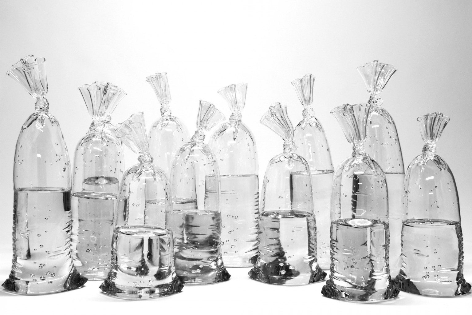 Sanatçı Dylan Martinez, erimiş camdan hiperrealistik plastik torbalar yapmak için birkaç cam üfleme ve heykel tekniği birleştiriyor.