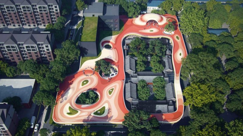 Çin merkezli stüdyo MAD, 1725 tarihli geleneksel bir Pekin avlusunu, 90lı yıllara ait modern bir binaya ve tasarladığı “Courtyard Kindergarten” anaokuluna entegre ederek restore ediyor. Bu projede bina stillerinin birleşimi ve mekânın çok boyutlu kullanımı, Çin’in mirası koruma felsefesinin yeni çizgisine uygun.