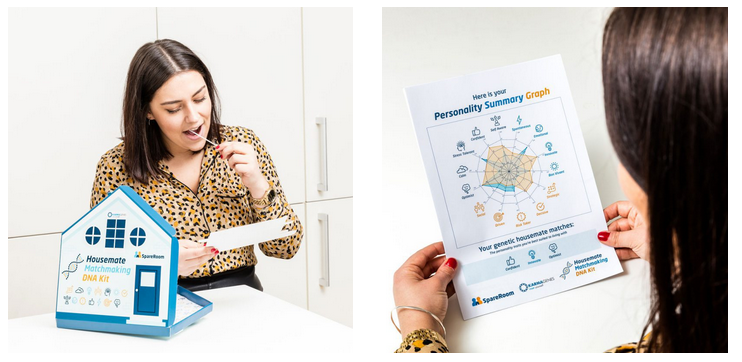 Uyumlu insanların tesadüfler dışında bir araya gelmesinin bir yöntemi mümkün mü? Ev paylaşım sitesi SpareRoom, DNA testi ile insanların mükemmel oda arkadaşı bulmasına yardımcı oluyor. SpareRoom, DNA profili ve kişilik testiyle bireylerin karakter analizinizi yapmak için İsviçreli Karmagenes ile işbirliği yaptı. Bu testlerin sonuçları, kişilikleri diğer profillerle karşılaştırıyor ve birbirine uygun olanların tespitini içeren detaylı rapor sunuyor. SpareRoom tamamlayıcı karakter eşleştirmesiyle uyumlu bir yaşam ortamı yaratmayı umuyor. DNA kişilik test kiti kişinin kendisinin uygulamayı yapabileceği kadar basit. İyimserlik, kendiliğindenlik, stres toleransı ve risk alma gibi özellikleri içeren ayrıntılı bir analiz yapıyor ve buna göre DNA’ları eşleştiriyor.