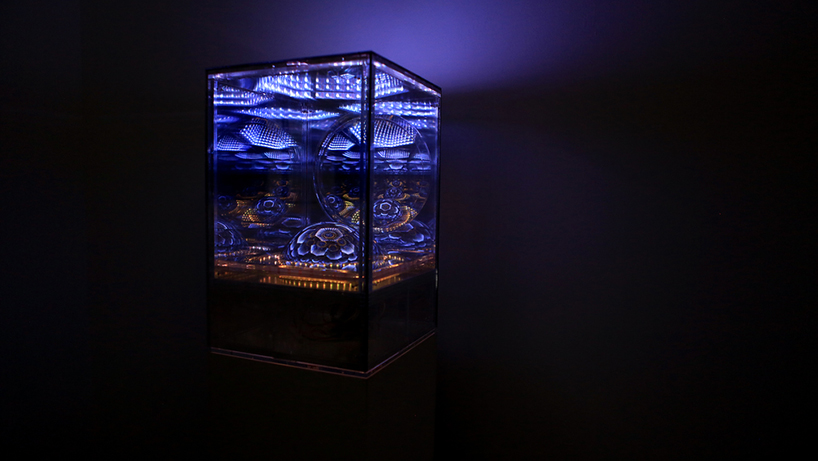 Çoklu ayna yüzeyler ve LED’ler görüntüleri ve sonsuz derinliği yaratmak için kaynaşır.