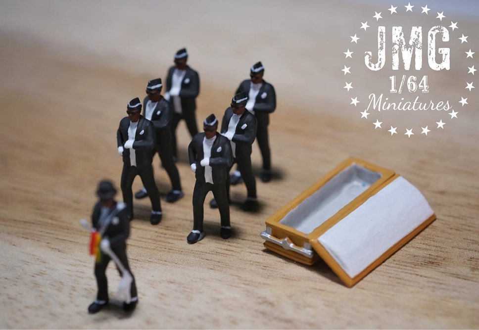 Bu zorlu günlerde akıl sağlığınızı korumak için eğlenceli paylaşımlar arasında geziniyor musunuz? Eğer öyleyse sosyal medyanın meşhur yüzlerinden cenaze dansçılarına denk gelmişsinizdir. Artık dans eden tabut taşıyıcılarının minyatür versiyonlarını odanıza koyabilirsiniz. Hong Kong merkezli heykelcik üreticisi JMG 1/64 Miniatures iki figür yarattı. 49 dolarlık fiyatla piayasa sürülen birinci figür tabutlu yedi yürüyen tabutçuyu tasvir ederken 40 dolarlık set ise liderleri önden yürürken sürünen dört tabut taşıyıcısının arkasında duran bir tabutla tamamlanıyor.