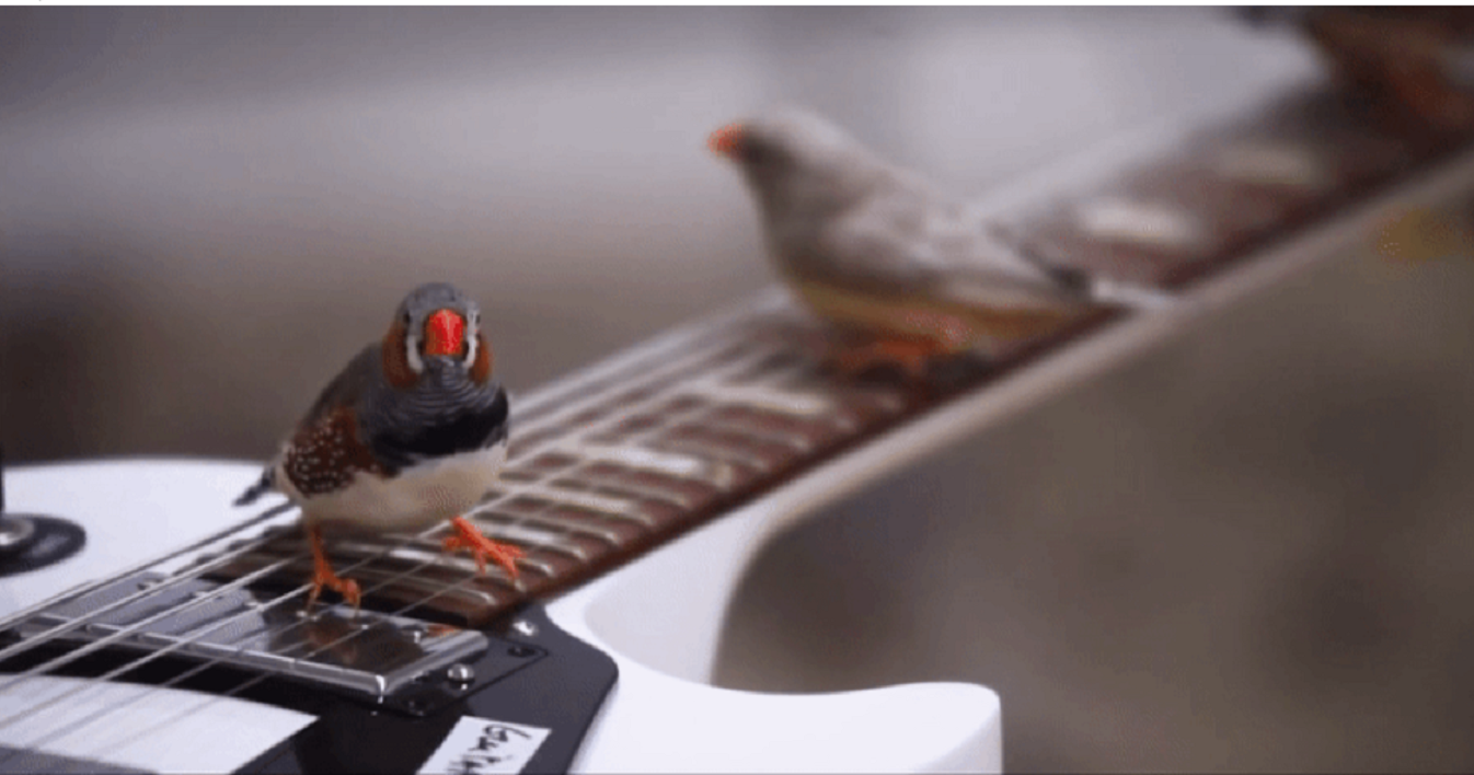 Kuşlar şakırken güzel sesler çıkarabilirler. Peki ya pençelerini bazı enstrümanlara geçirirlerse? Bu sorudan ilham alan Fransız sanatçı Céleste Boursier-Mougenot, kuşların 14 amplifiye gitarla etkileşime girmesine izin veren bir alan yarattı. From Here to Ear adlı ses projesi, 70 zebra ispinozunun çırpınırken, tünerken ve tellere zıplarken benzersiz sesler yaratmasıyla gerçekleşiyor.