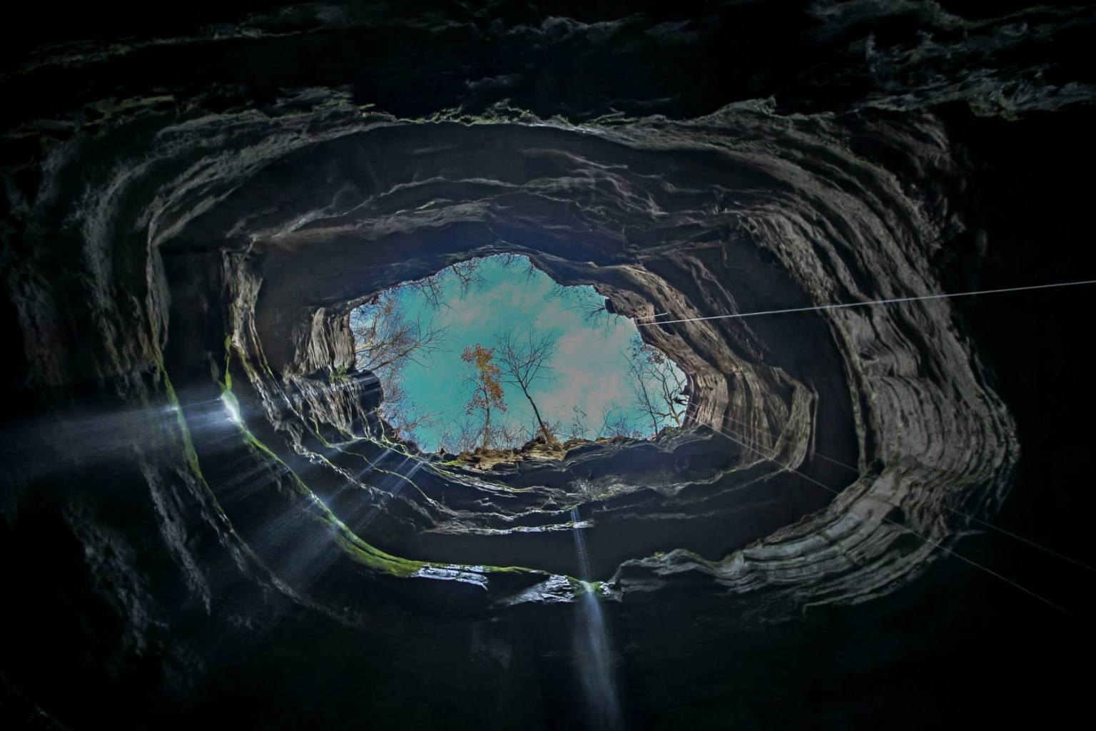 Looking up from the bottom of Neversink Pit, cave in Alabama