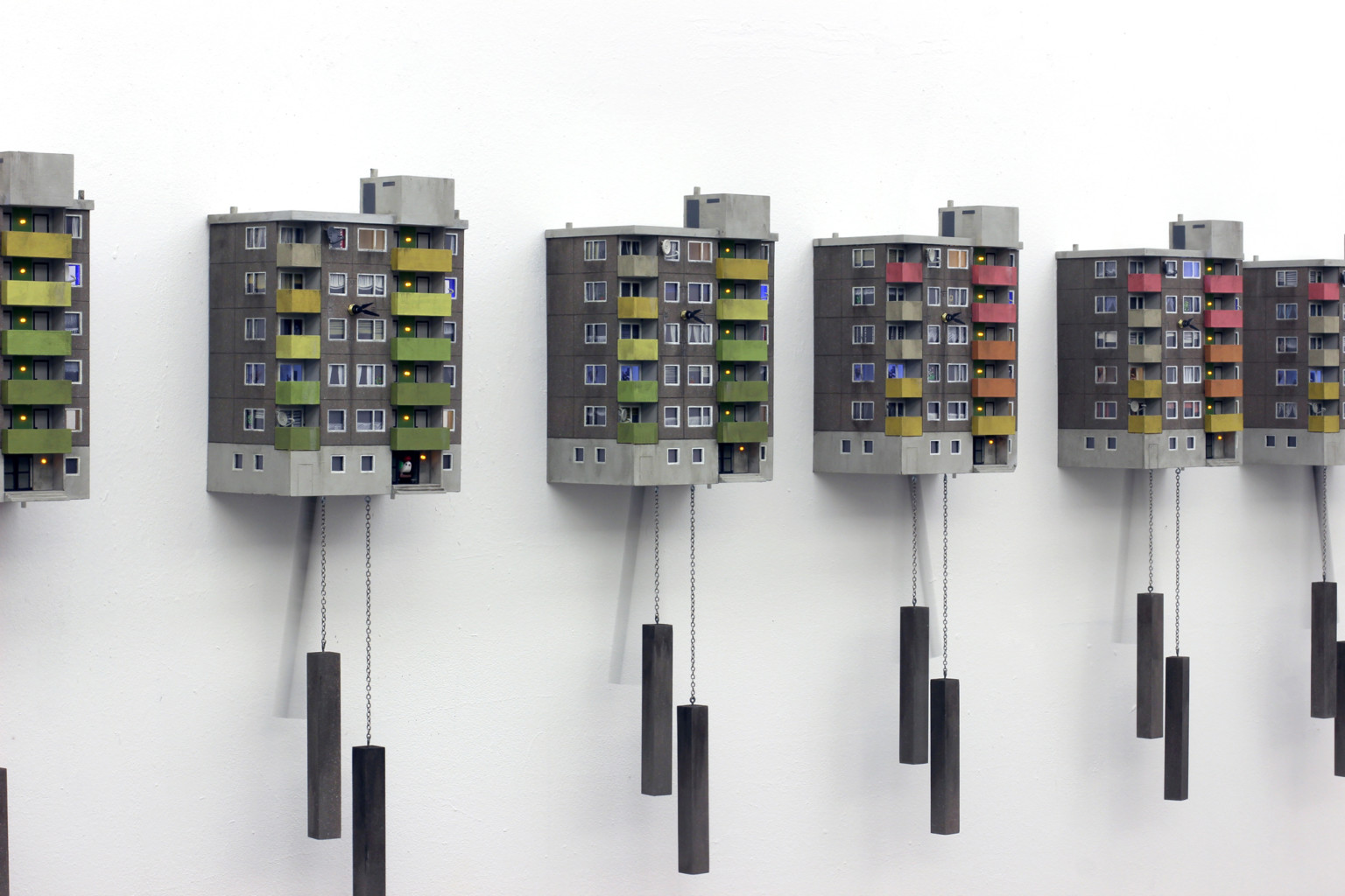 Sanatçı, “Klasik guguklu saat orta sınıfın refahı anlamına gelir ve ağırbaşlı evler için bir tür lüks olarak sayılır, bir panel yapı olarak güncellenmiş versiyon, apartman bloklarında bugünün kentsel ve sosyal yaşamını göstermektedir,” diyor.