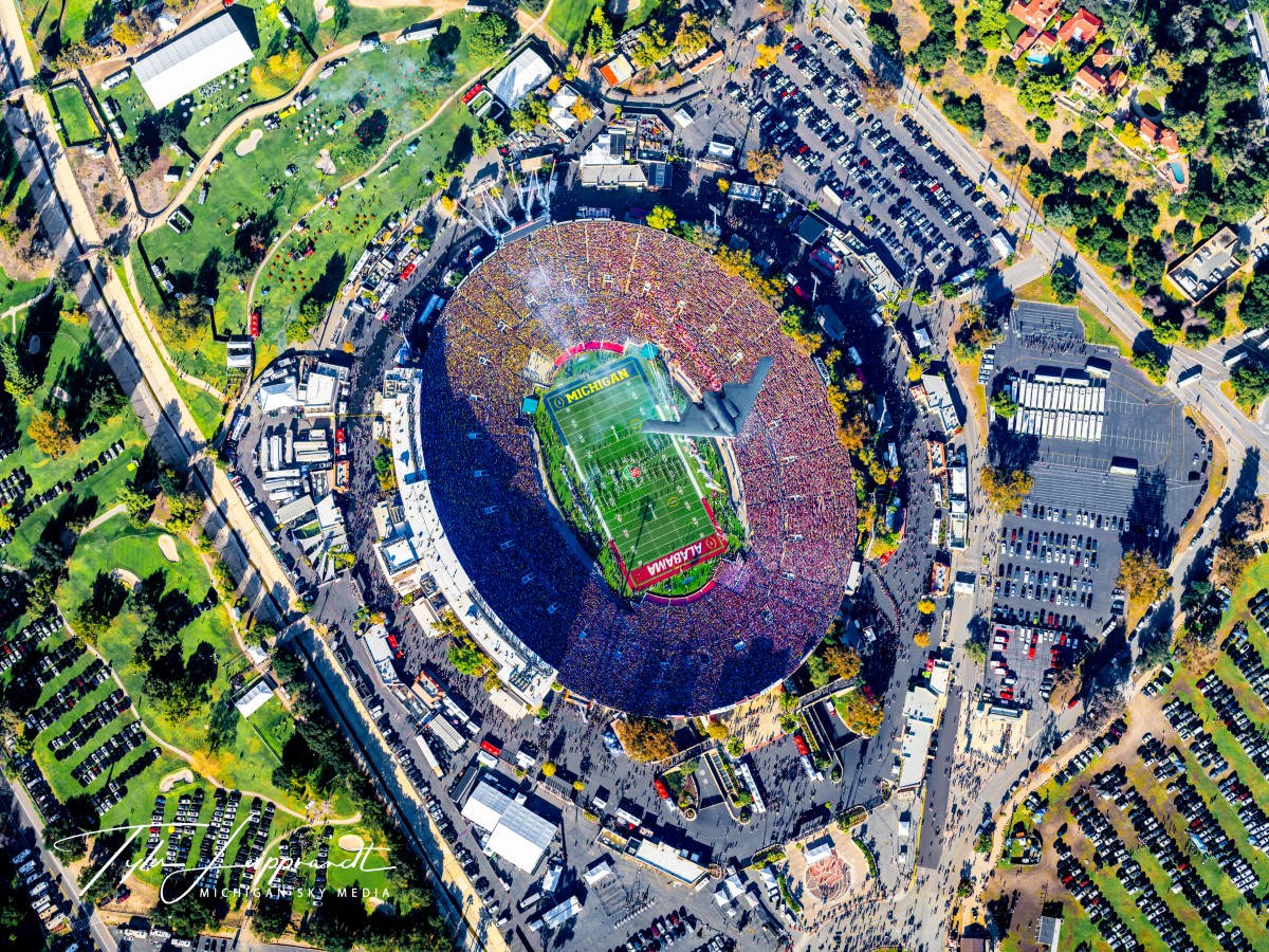Fotoğrafçı Tyler Leipprandt, Rose Bowl’un üzerinde uçan bir B2 Bomber’ın fotoğrafını gördüğünde ölmeden yapılacaklar listesi değişti. Leipprandt o anın epik bir fotoğrafını çekmeyi kafaya taktı. Bunu yapması üç yıl sürdü ama Leipprandt’ın hayali 2024 Rose Bowl’da gerçekleşti. Michigan Sky Media’nın sahibi olan Leipprandt hava fotoğrafçılığı konusunda bir uzman. Ayrıca diğer büyük maçlarda uçuş görüntüleri çektiği için bu tür uçuşlarda da deneyim var. Michigan’da Rose Bowl’un oynanacağını öğrendiğinde anı yakaladı ve büyük gün için plan yapmaya başladı.