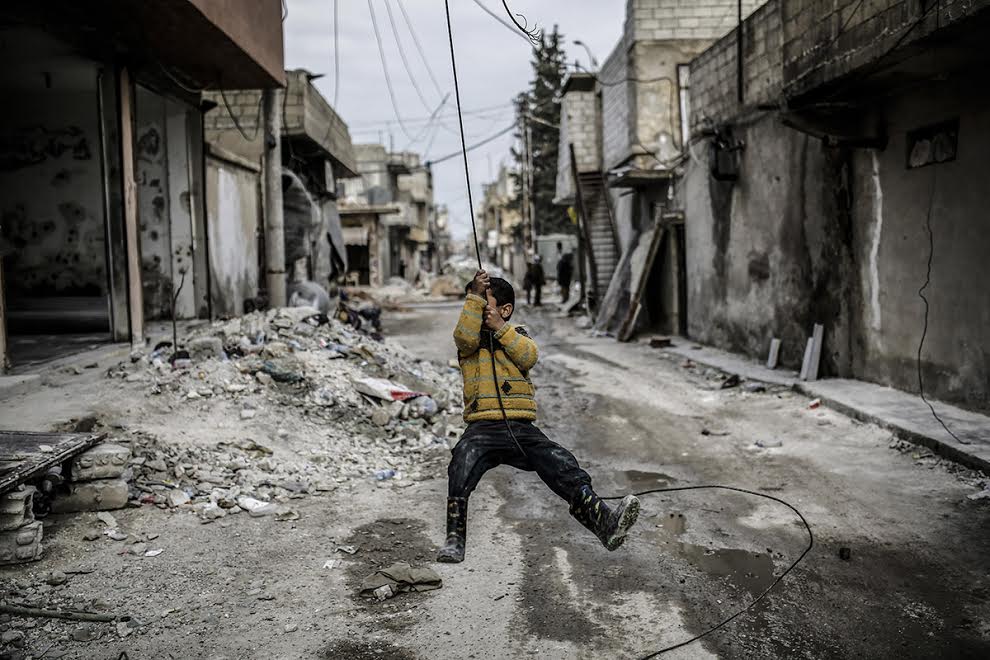 Yasin Akgül sergiye, iç savaş sırasında tamamen yıkılmış bir kent olan Kobane’yi anlattığı bir fotoğraf serisiyle katılıyor. 2015 yılına ait fotoğraflarda keskin nişancılardan korunmak için sokaklara asılan perdeleri konu almış.