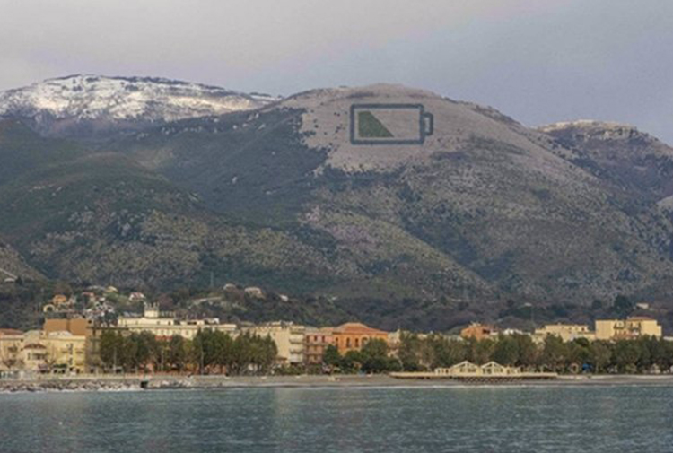 İtalya’da Olivella Dağı’nı ağaçlandırmak için yapılan proje kapsamında dağa yeniden şarj olan bir pil figürü yapıldı. Proje ile 5,000 yerel ağacın dikilmesi ile pil yavaş yavaş “dolacak” ve Avrupa’nın en büyük sanat projesi unvanını kazanacak.