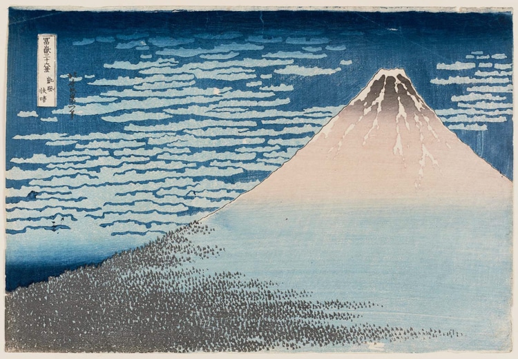 kapak resmi: 1830-1831, Güzel Sanatlar Müzesi Boston (Güzel Rüzgar, Açık Hava (Gaifû kaisei), ayrıca Red Fuji “Katsushika Hokusai olarak da bilinir)