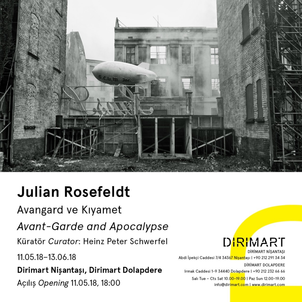 Avustralyalı oyuncu Cate Blanchett’i on üç farklı rolde izlediğimiz; dadaistler, sitüasyonistler, fütüristler gibi sanatçı gruplarının tarihsel avangard manifestolarının yeniden sahnelendiği film yerleştirmesi Manifesto (2015) ile dünya çapında yankı uyandıran Berlinli sanatçı Julian Rosefeldt, film ve fotoğraflarının Türkiye’deki ilk kapsamlı gösterimini Dirimart’ın Nişantaşı ve Dolapdere’deki iki galerisine yayılan yerleştirmelerle gerçekleştiriyor. Film ve fotoğraflarında, sinema ve resim tarihine açık göndermelerde bulunan, aynı zamanda totaliterlik, ekoloji, vatan ve göç gibi önemli sosyal ve politik konuları ele alan Rosefeldt, bunları pop kültürü ile sürekli oyuncu bir diyalog içinde işleyerek son derece estetik bir evren yaratıyor.
