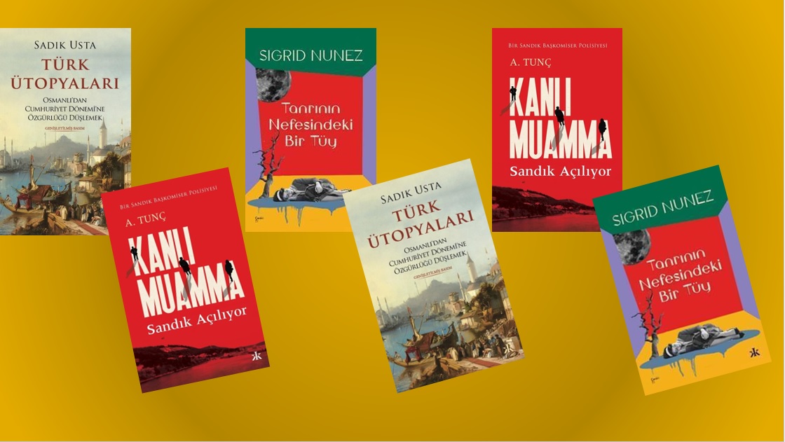 Kafka Kitap kasım ayında A.Tunç’un yerli polisiyeye taze bir soluk getiren romanı Kanlı Muamma – Sandık Açılıyor’u; Sadık Usta’nın, bugüne kadar kütüphane raflarında bekleyen Türk ütopyalarını ilk kez Osmanlıca’dan günümüz Türkçe’sine aktardığı Türk Ütopyaları adlı kitabının genişletilmiş yeni edisyonunu ve Sigrid Nunez’in, insan doğasının karmaşık yapısına dair büyülü bir masal anlattığı romanı Tanrı’nın Nefesinde Bir Tüy’ü edebiyatseverlerle buluşturdu. Kafka Kitap logolu tüm kitaplar, raflarda ve internet satış sitelerinde!