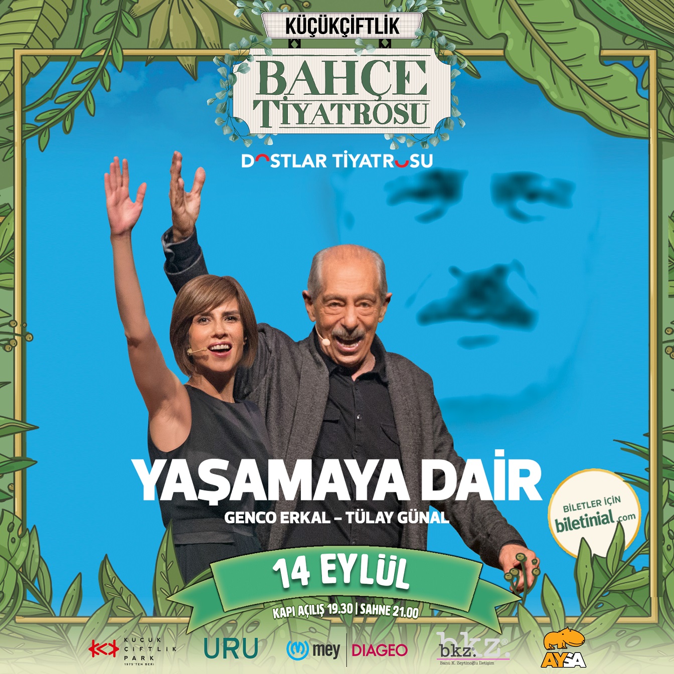 Usta tiyatrocuGenco Erkal’ın Tülay Günal’la birlikte, Nazım Hikmet’in sürgün yıllarını ve vatan hasretini şarkılar eşliğinde anlattığı “Yaşamaya Dair – Bursa Cezaevi’nden Mektuplar” 14 Eylül Perşembe akşamı KüçükÇiftlik Bahçe Tiyatrosu’nda seyirciyle buluşacak.