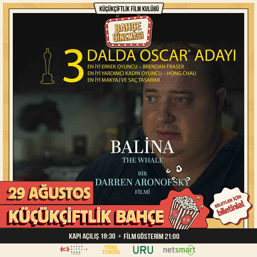 Yaz ayları boyunca yemyeşil bahçe ortamında sinemanın en beğenilen filmlerini sinemaseverlerle buluşturan KüçükÇiftlik Film Kulübü Sunar: Bahçe Sineması’nın 2023 programı, iki Oscar ödüllü “Balina” (The Whale) filmiyle 29 Ağustos Salı akşamı sona eriyor.