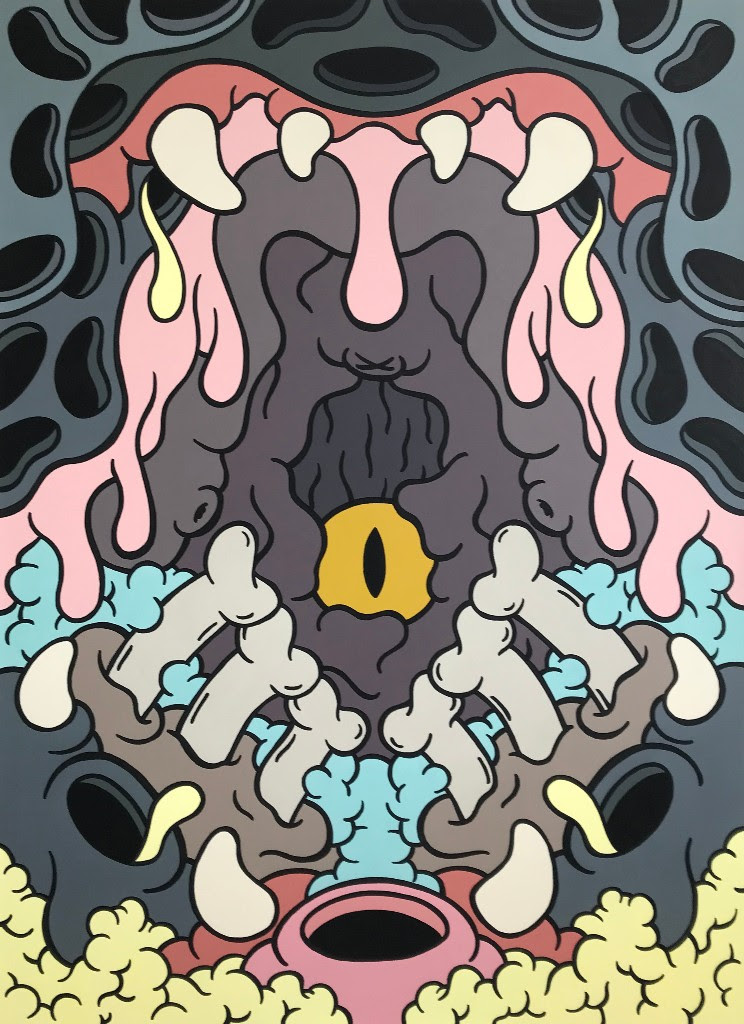 Cins’in “Mağaralar” adlı kişisel sergisinde oluşturduğu renkli ve garip dünya 30 Haziran’a kadar Büyükdere35 Kültür Sanat Platformu’nda.