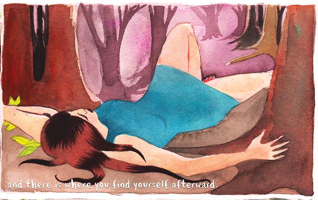 Aşağıdaki suluboya illüstrasyon koleksiyonunda bir çizgi roman sanatçısı olan Leela Corman kendi kederli yolculuğunu resmetti. Sanatçı, her parçasının halen kederle kıvrandığını ama yavaş yavaş iyileşmeyi ve yaşamayı öğrendiğini ifade ediyor.