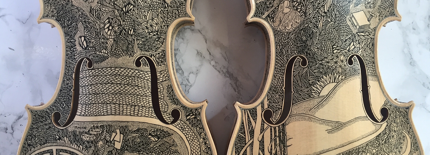 Leonardo Friga’nın keman gövdeleri üzerine elle yaptığı illüstrasyonların her birinin tamamlanması yaklaşık bir ay sürüyor. Mezar taşları, ölüler, yüzü olmayan adamlar, efsanevi yaratıklar, savaşlar ve diğer hikâyeleri, kıvrımlı müzikal tuvallerin üzerine ince bir şekilde boyamak zaman ve sabır istiyor.