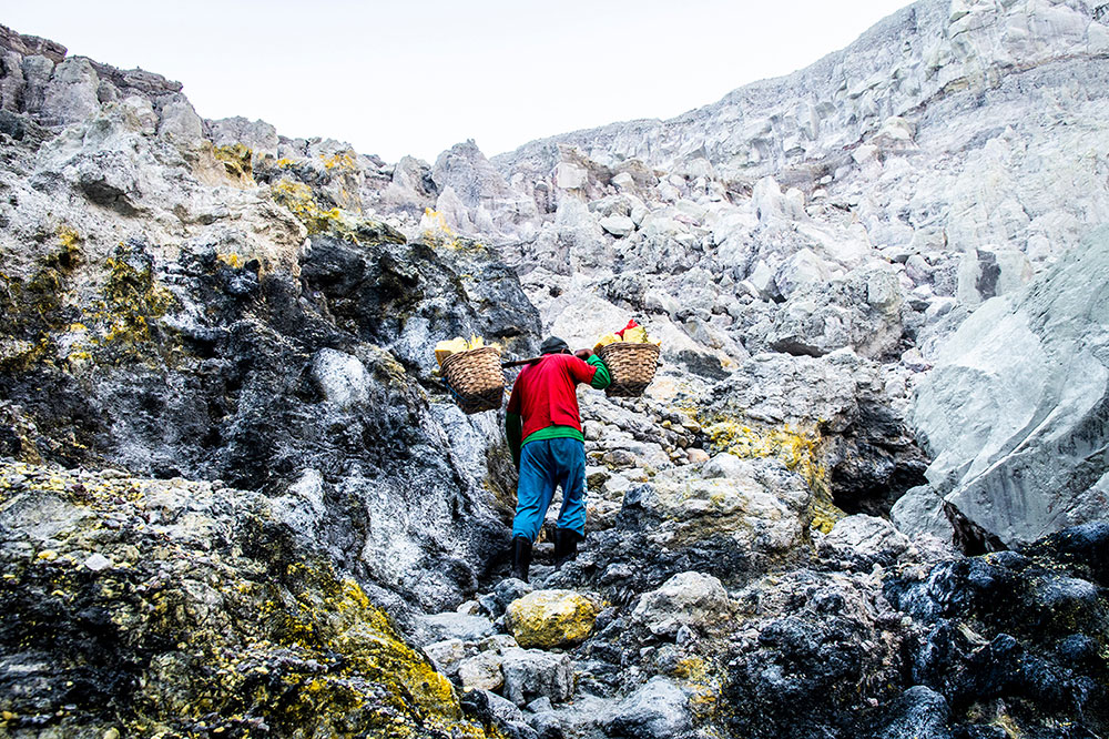 Madenciler zehirli dumanlar ve çok sert tırmanışlar arasında birkaç kilometre boyunca yaklaşık 70 kilogram kükürt taşırlar. Hepsi günde 6/7 dolar içindir. Bu rakam çıkarıldıktan sonra sülfürün bir Endonezya kozmetik şirketi tarafından satın alındığı fiyattır.